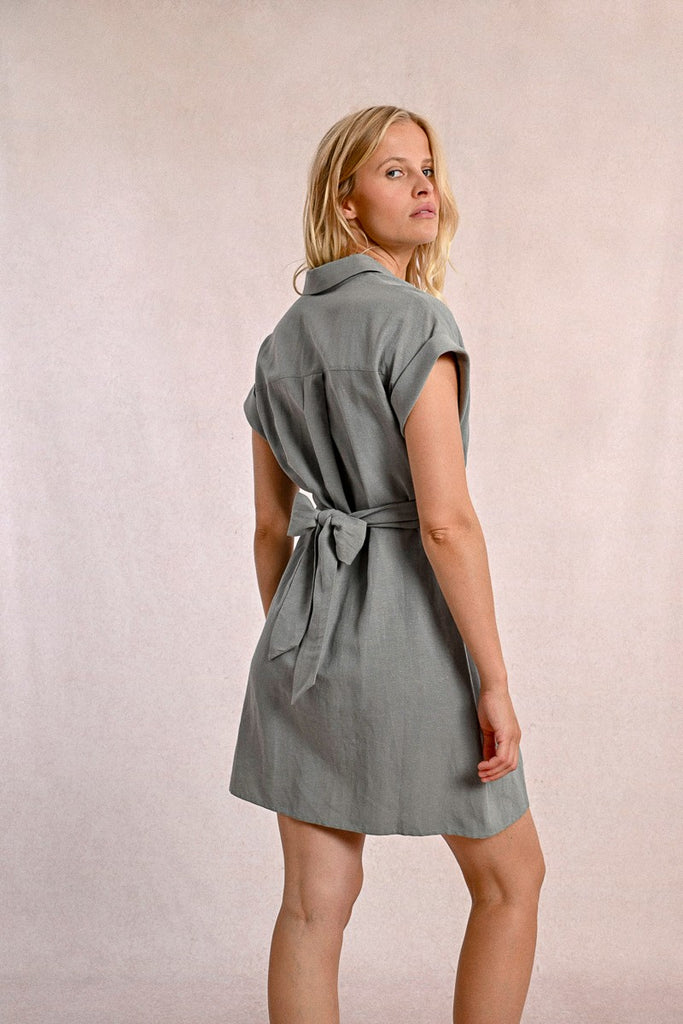 Molly Bracken Tie-Back Shirt Dress in Sage