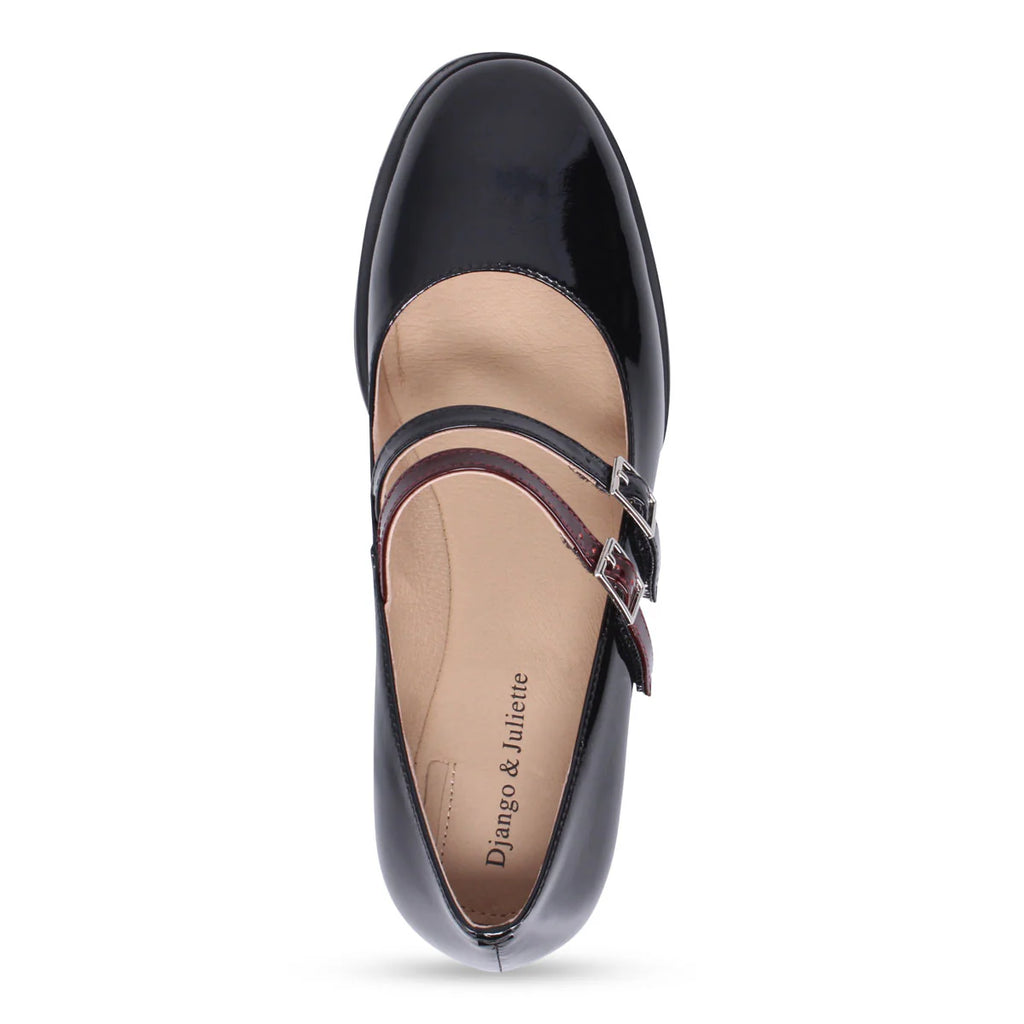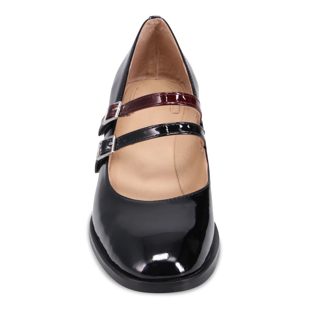 Playful yet polished, this double-strap block heel is all about unexpected details. With a glossy finish and contrasting straps in bold tones, it takes the classic Mary Jane silhouette to vibrant new heights. The flared heel adds architectural flair, while the twin buckles keep the fit secure and the attitude high. Necklace is a statement shoe for the days you want to stand out—without saying a word.