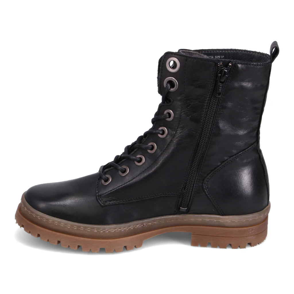 This combat-style boot combines rugged functionality with urban aesthetics. It features a lace-up front for a customizable fit, complemented by an interior zipper that makes it easy to slip on and off without adjusting the laces every time. The durable gum sole offers excellent grip and resilience, suitable for various terrains and weather conditions. Crafted from sturdy materials, this boot embodies a tough exterior while ensuring comfort with its supportive design. Ideal for those who appreciate a blend of style and practicality, this lace-up boot with an interior zip is perfect for daily wear, whether you're navigating city streets or exploring a little nature.