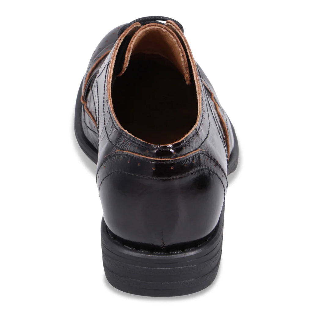 Shine on in Lydian. Classic meets high-shine in this elevated oxford. With a rich patent-like finish, subtle brogue details, and a timeless silhouette, this pair walks the line between vintage charm and modern glam. It’s your go-to for adding polish—literally—to tailored looks, night-out fits, or anything needing that extra spark.