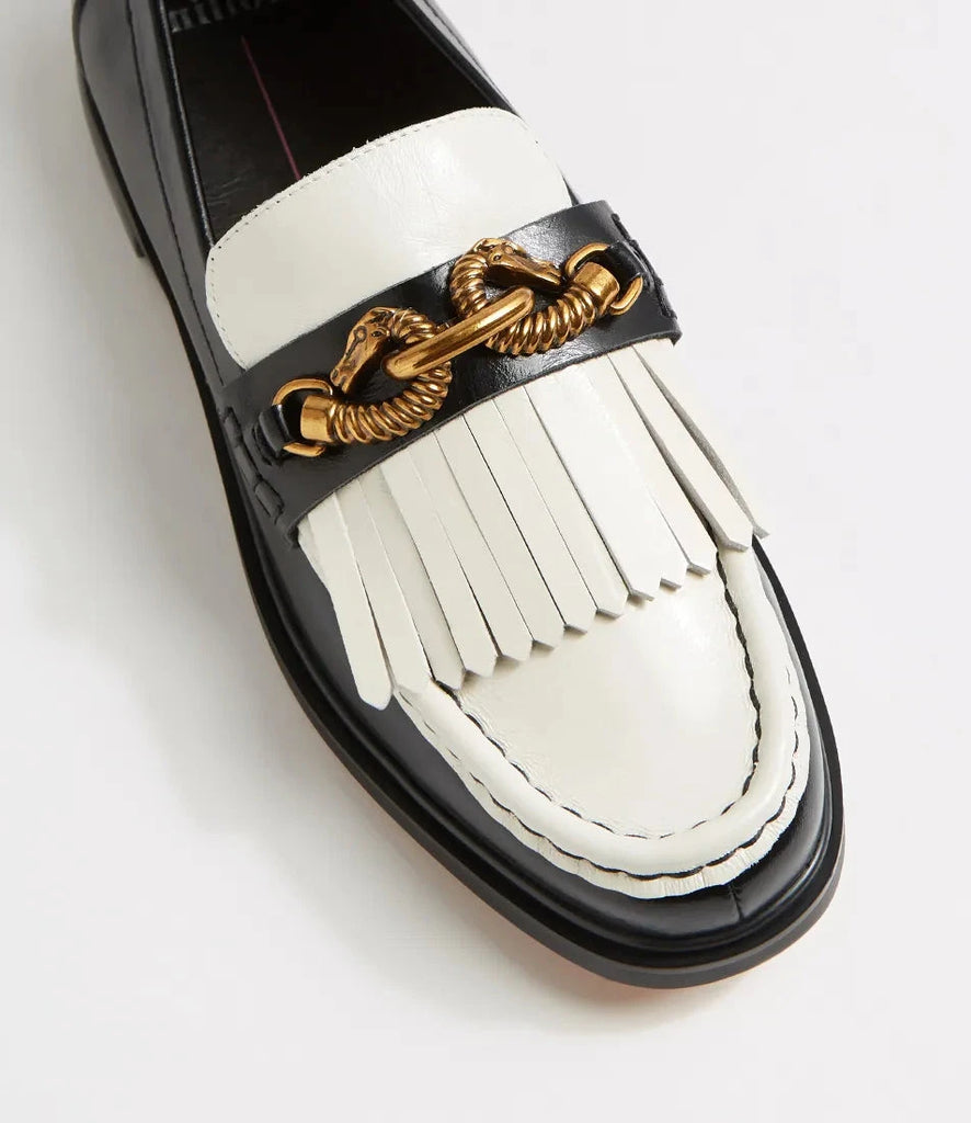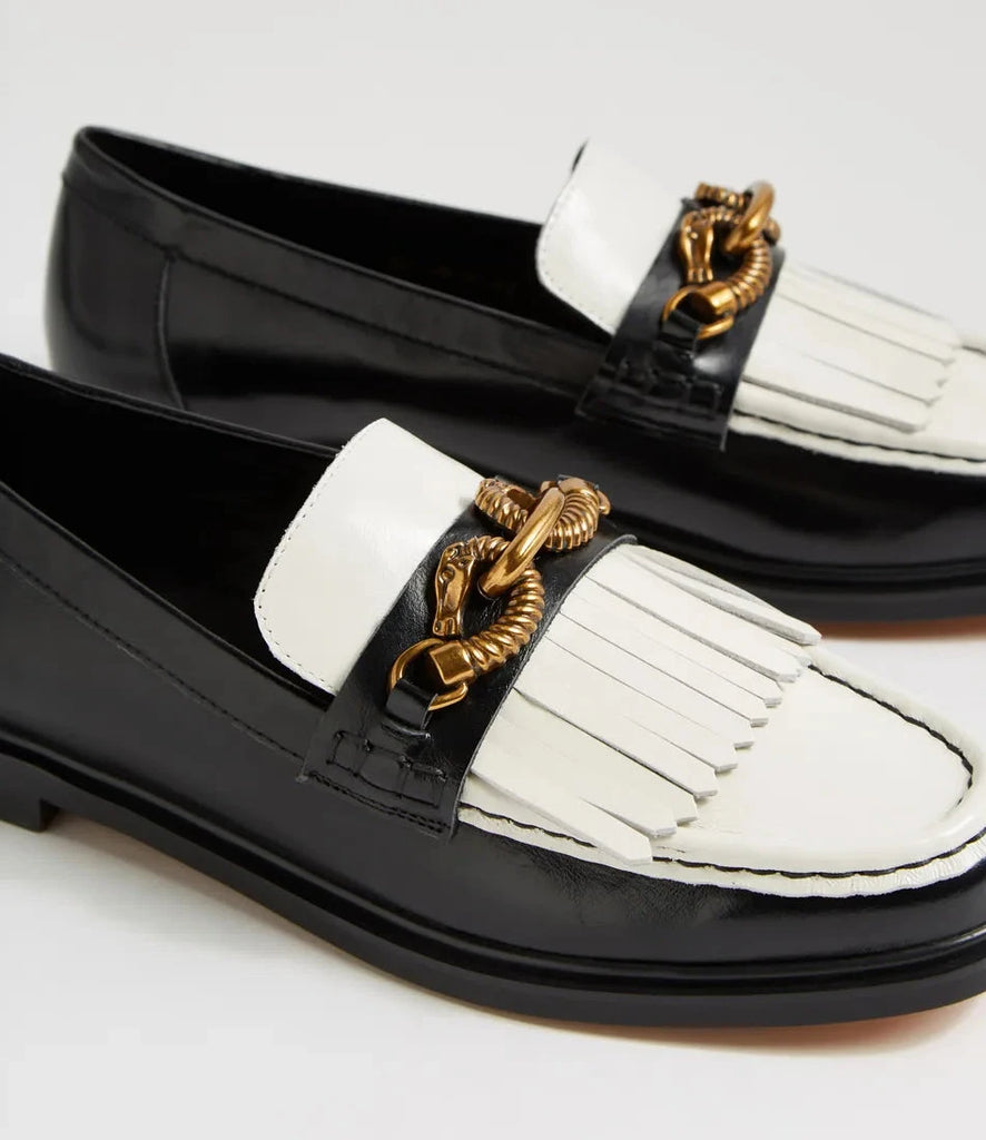 Slip into classic style with these flat leather loafers by Mollini. With a tassel embellishment and metallic detailing, GRIN brings traditional style to your everyday looks.